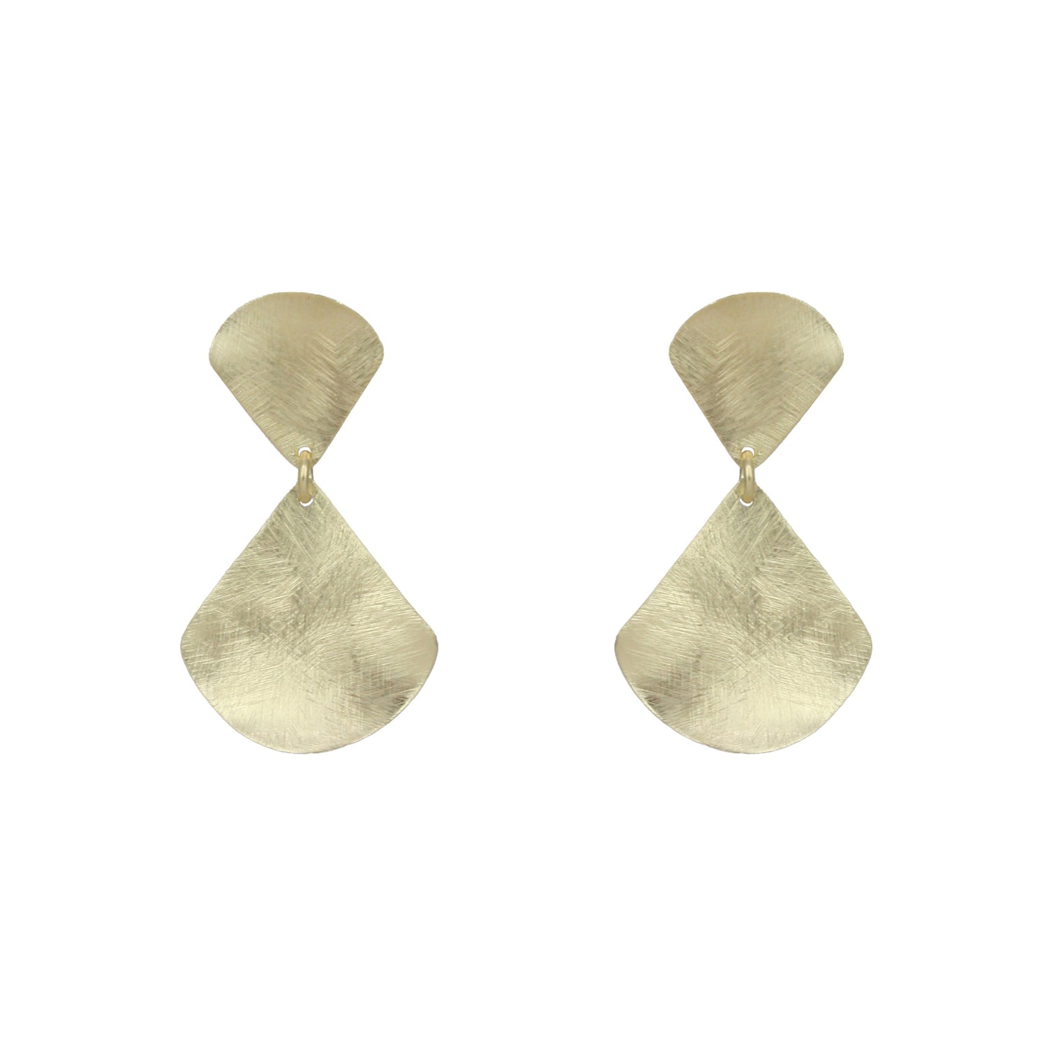 These 18k gold plated brushed post earrings feature two triangle shapes, offering a modern and versatile design. Measuring 1.25 inches, they are perfect for everyday wear, adding a subtle yet stylish touch to any outfit. Made in Brazil, these earrings showcase exceptional craftsmanship and a refined aesthetic.