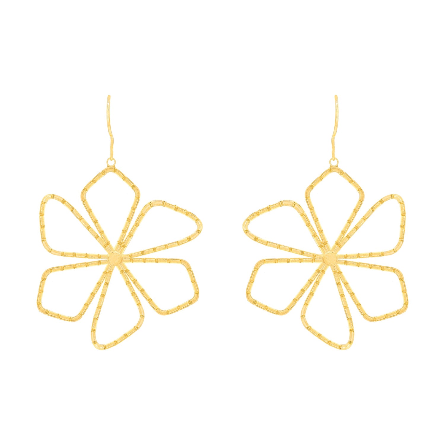 18k gold plated flower earrings attached to a wire. Measures 1.25" long