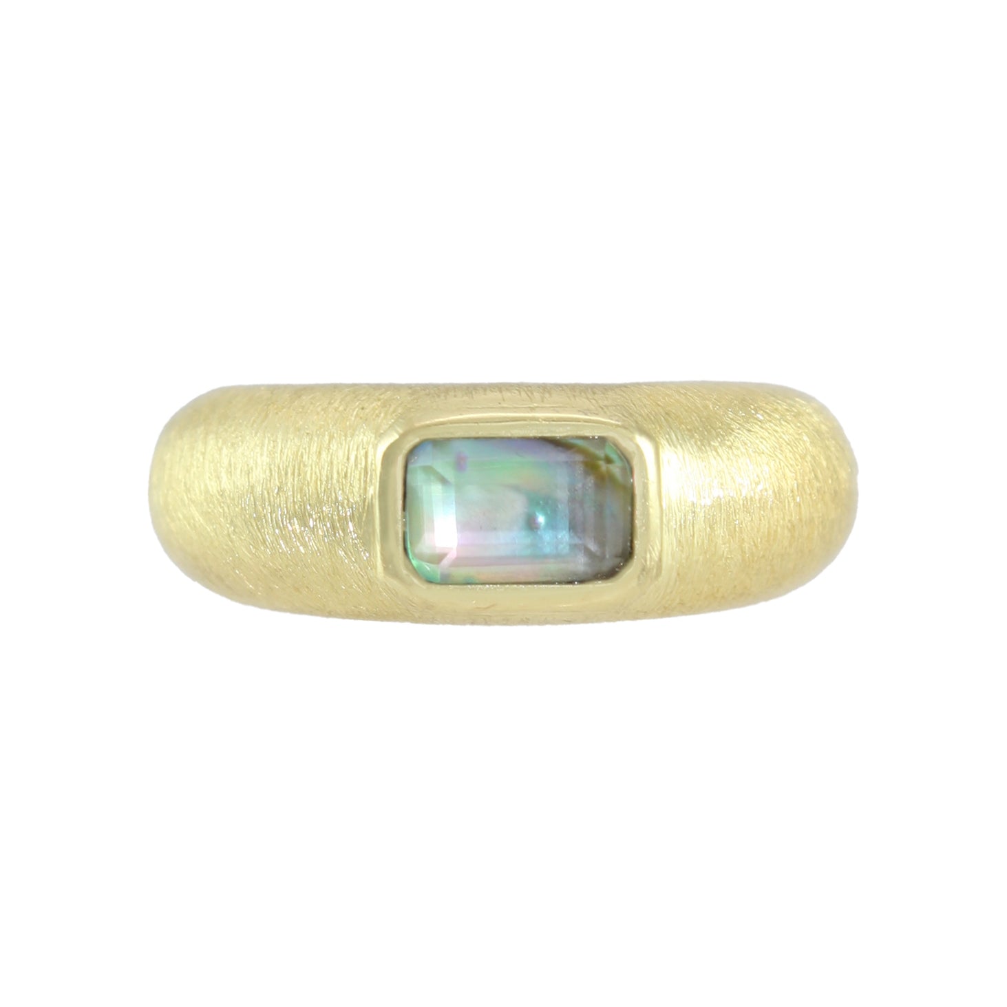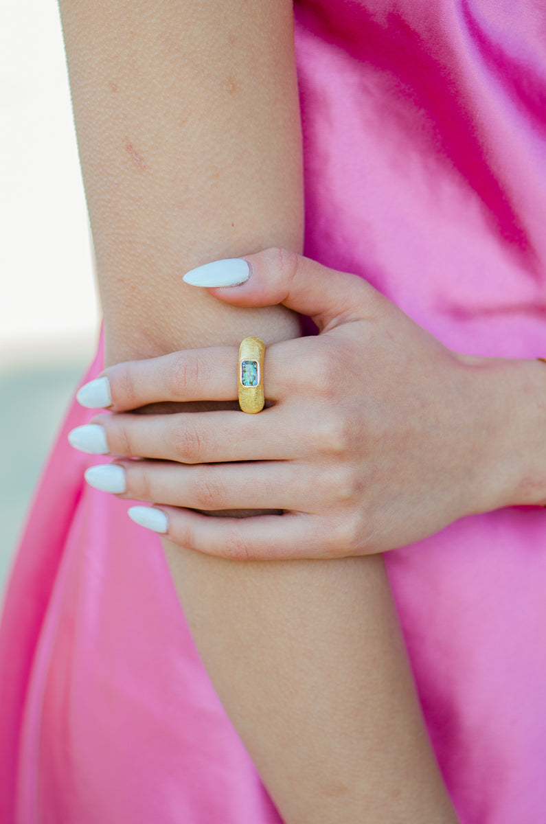 - 18k gold plated ring with a rectangular stone and brushed gold texture band