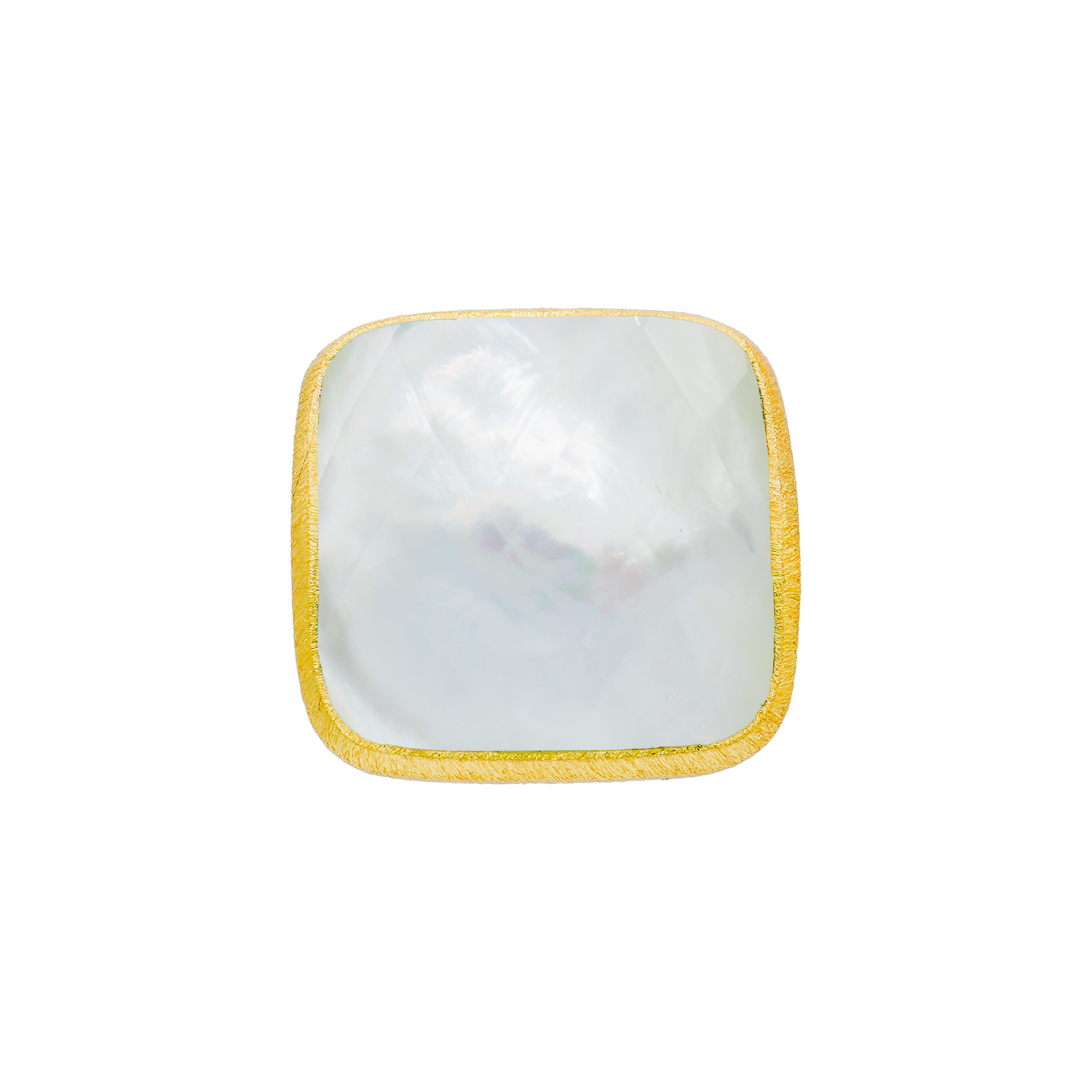 This 18k gold plated square ring features a charming stone and measures 1" wide, making a bold yet stylish statement. Handmade in Brazil, it combines artisanal craftsmanship with a modern design, ensuring each piece is unique. The square shape and gold plating offer a sophisticated touch, while the cute stone adds a subtle pop of elegance.
