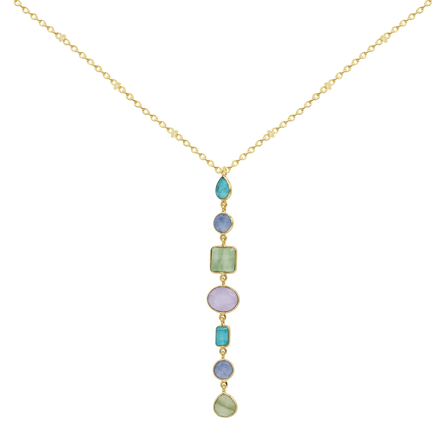 This necklace feels like poetry in motion — soft, feminine, and effortlessly elegant. The delicate 24k gold-plated chain draws the eye to a graceful cascade of shapes, each one flowing into the next as if they were meant to be together. Its linear drop design creates a gentle elongating effect that flatters the neckline and adds a touch of quiet sophistication.