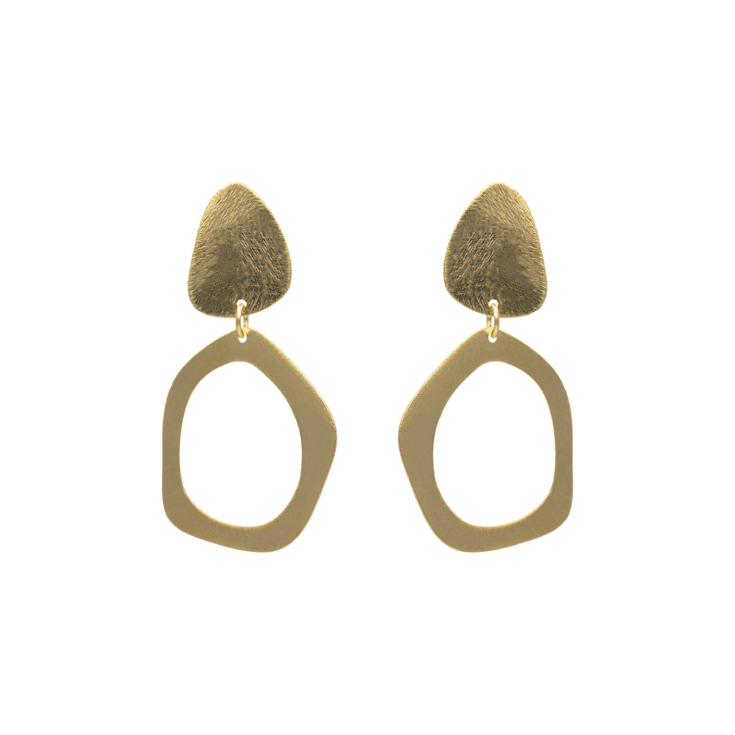 18k gold plated earrings with a modern open organic shape and a soft brushed finish. Lightweight and chic, they add effortless style to any look. Handmade in Brazil.