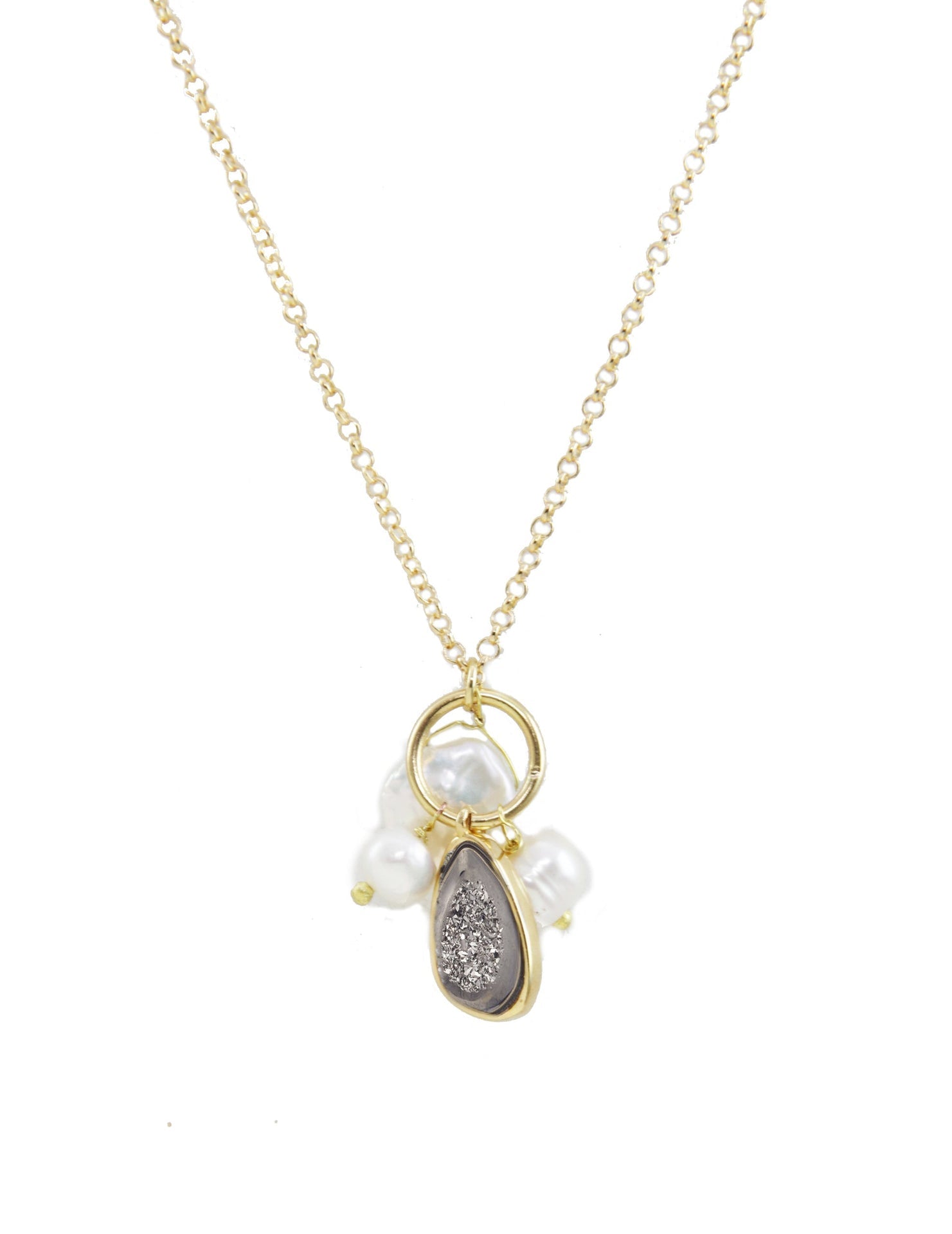 - 18'' chain necklace with a pearl and shiny titanium druzy charms
