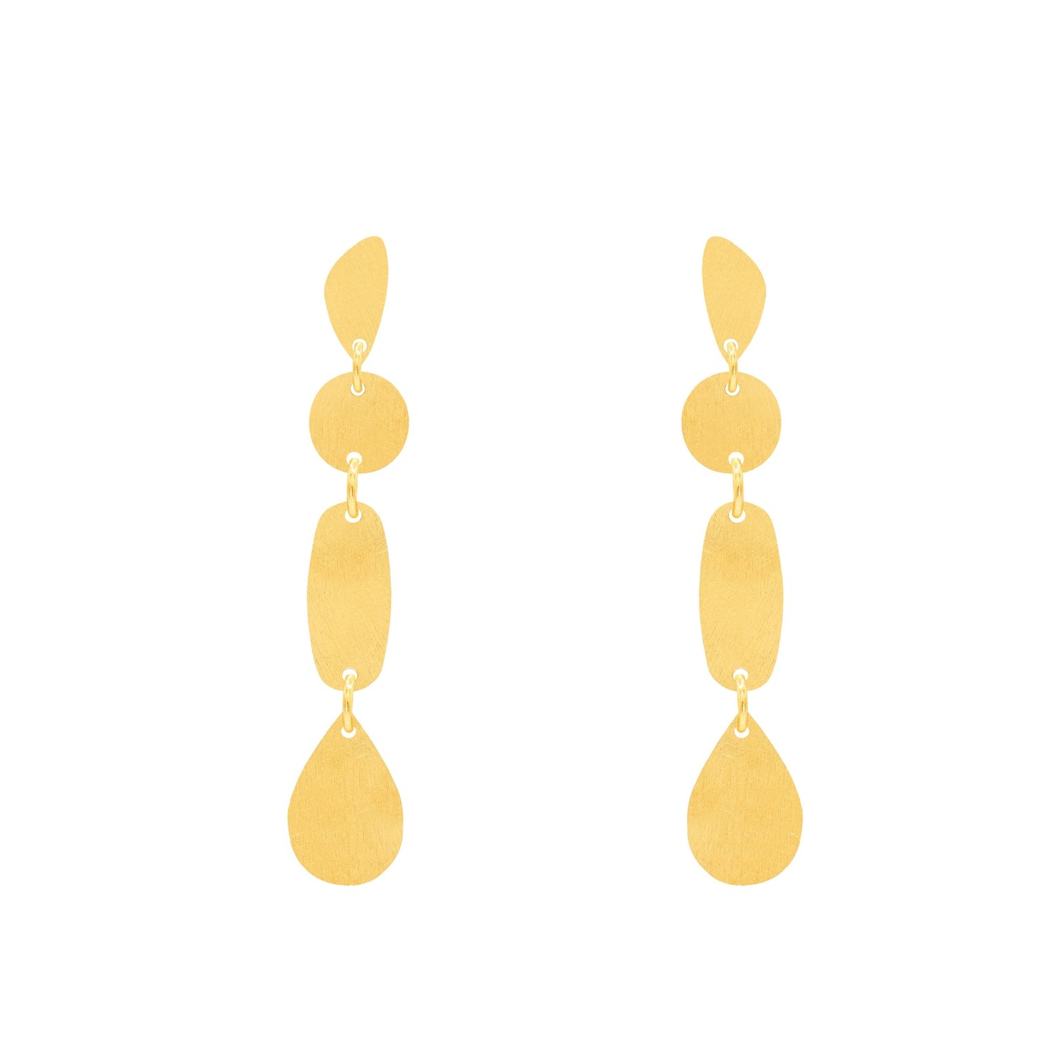 18k gold plated earrings of varying cascading shapes. Measuring 2" long and Handmade in Brazil.