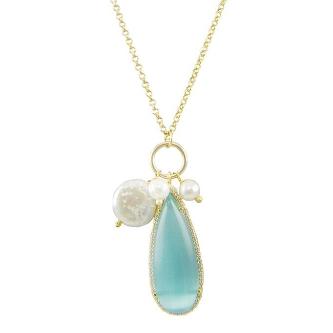- 18k gold plated necklace with a teardrop and freshwater pearl
