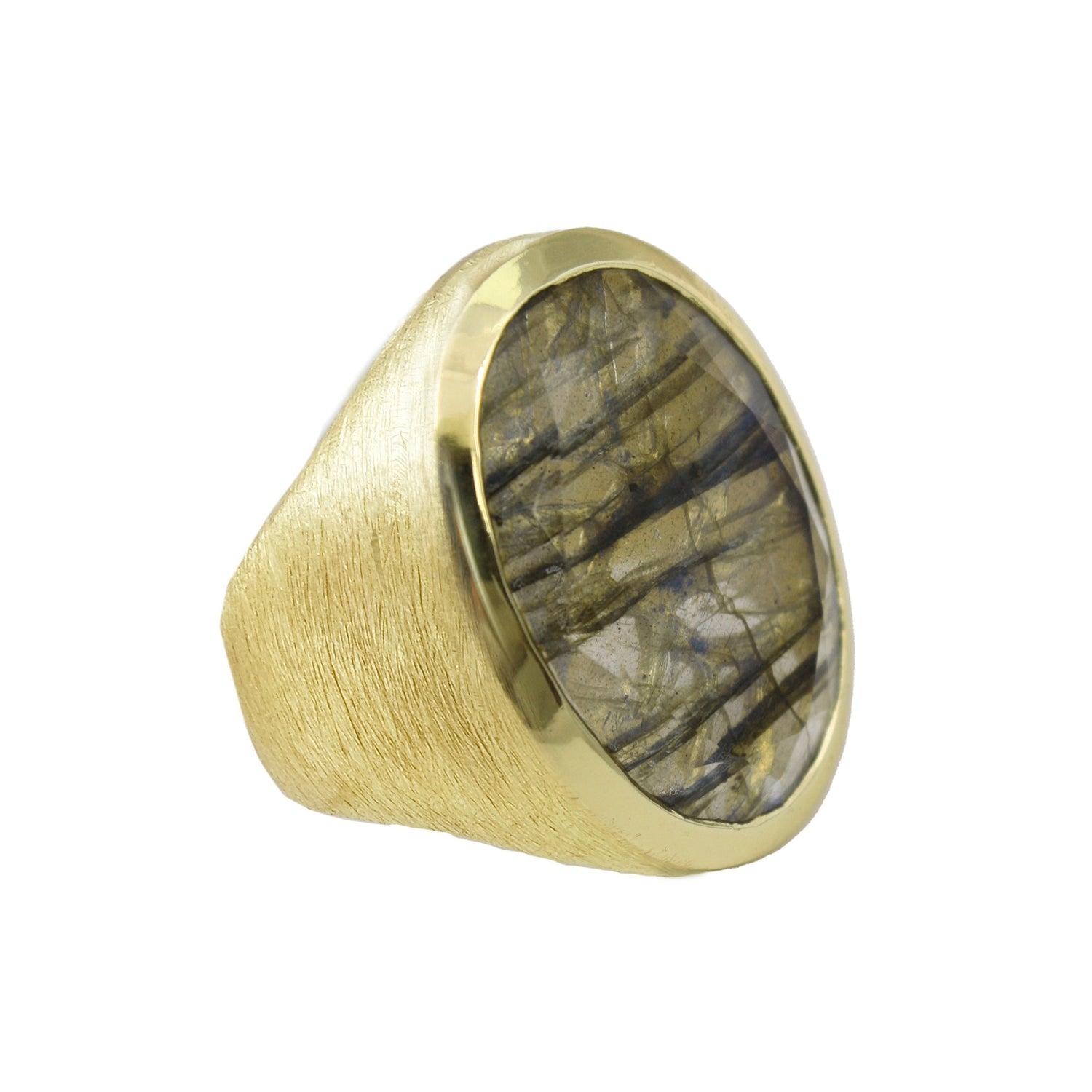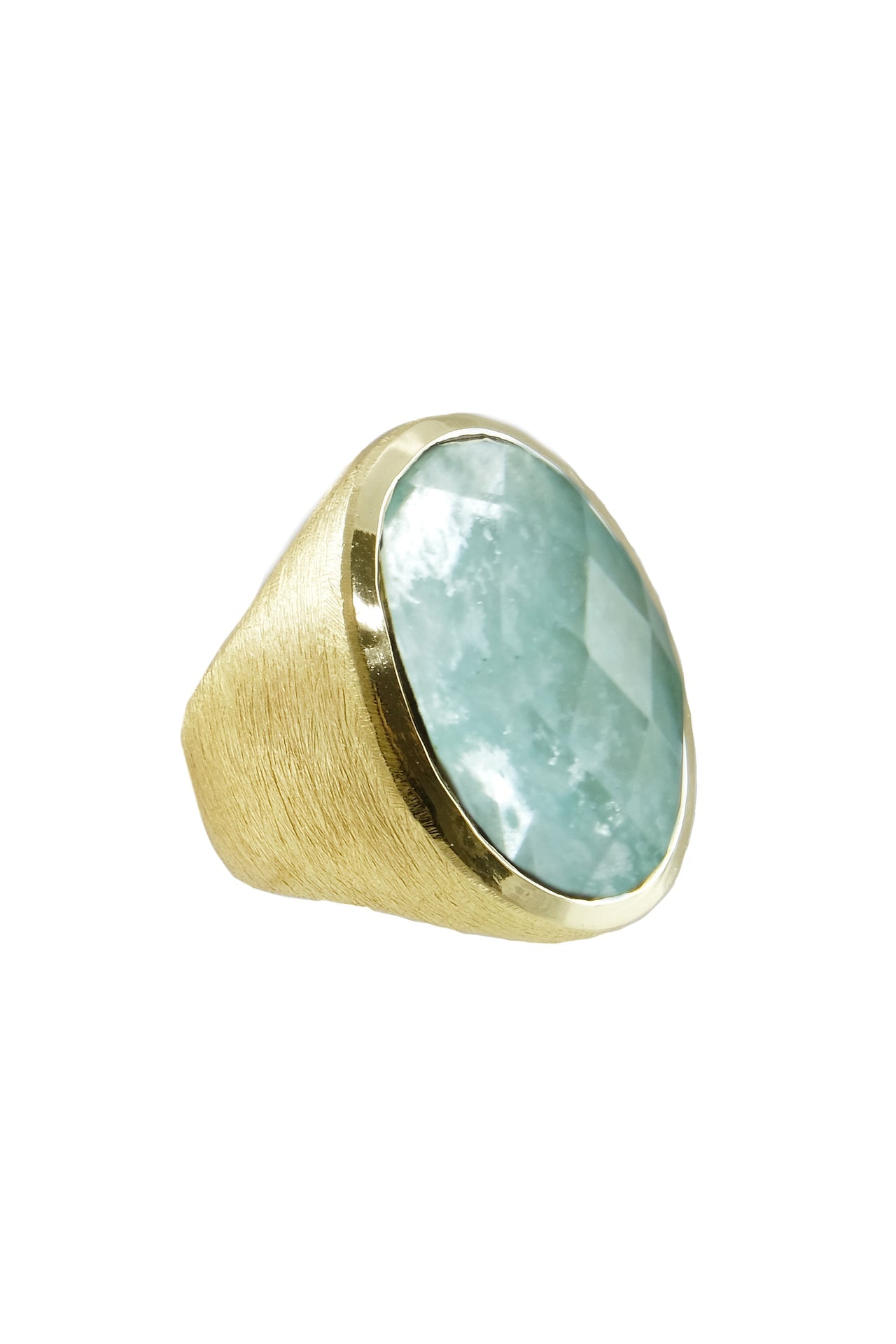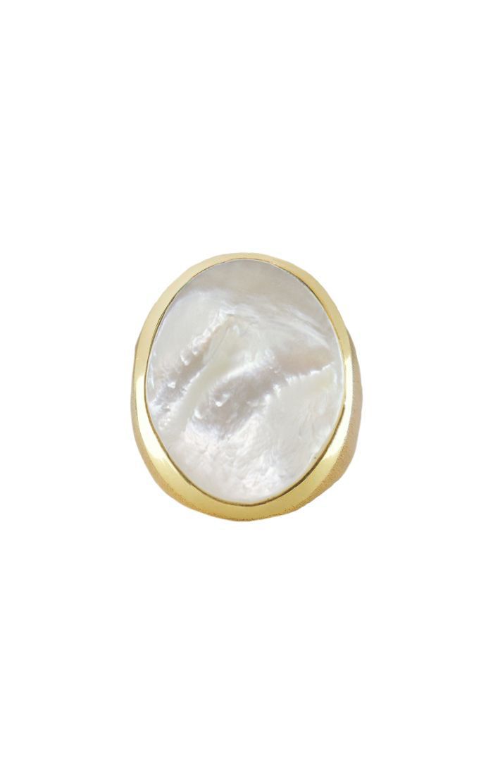 18k gold plated statement ring with a filigree setting. All rings feature a stone doublet unless stated such as flat mother of pearl & flat labradorite