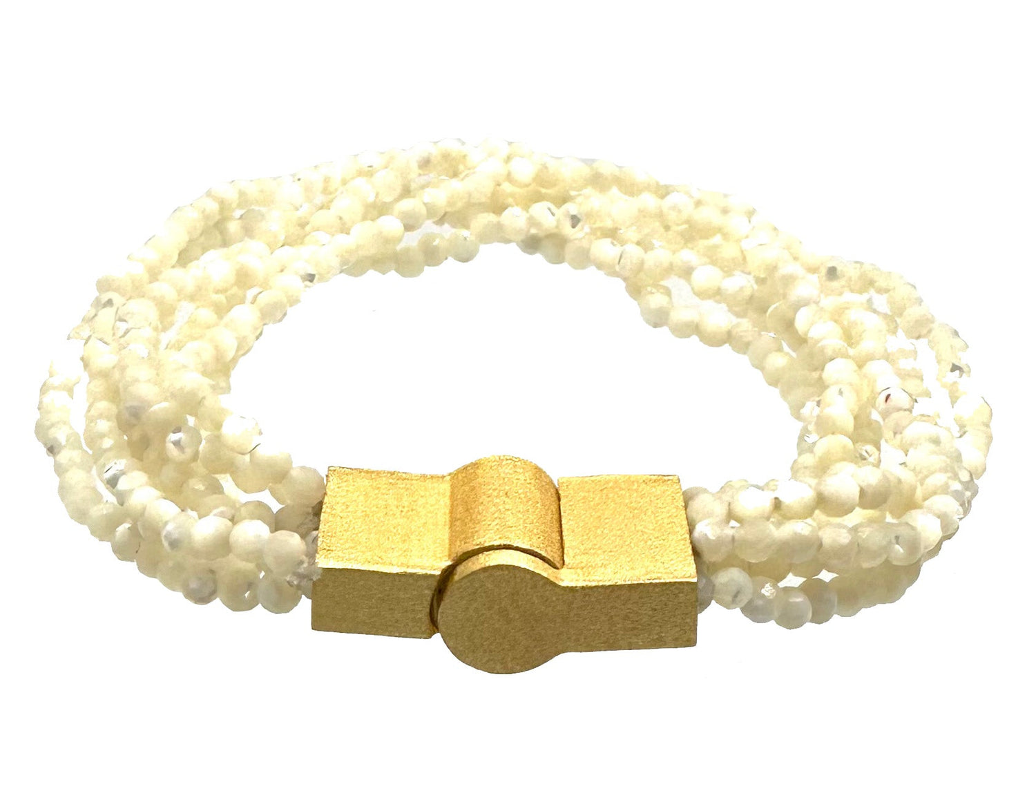 Multi-beaded stone bracelet featuring a magnetic closure. Measures 7.0 inches long.