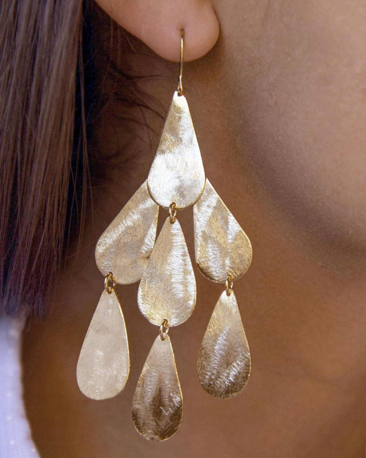 -Fan-favorite rain drops for your reign of style. 18k gold, Gunmetal, or rhodium plated chandelier statement earring.