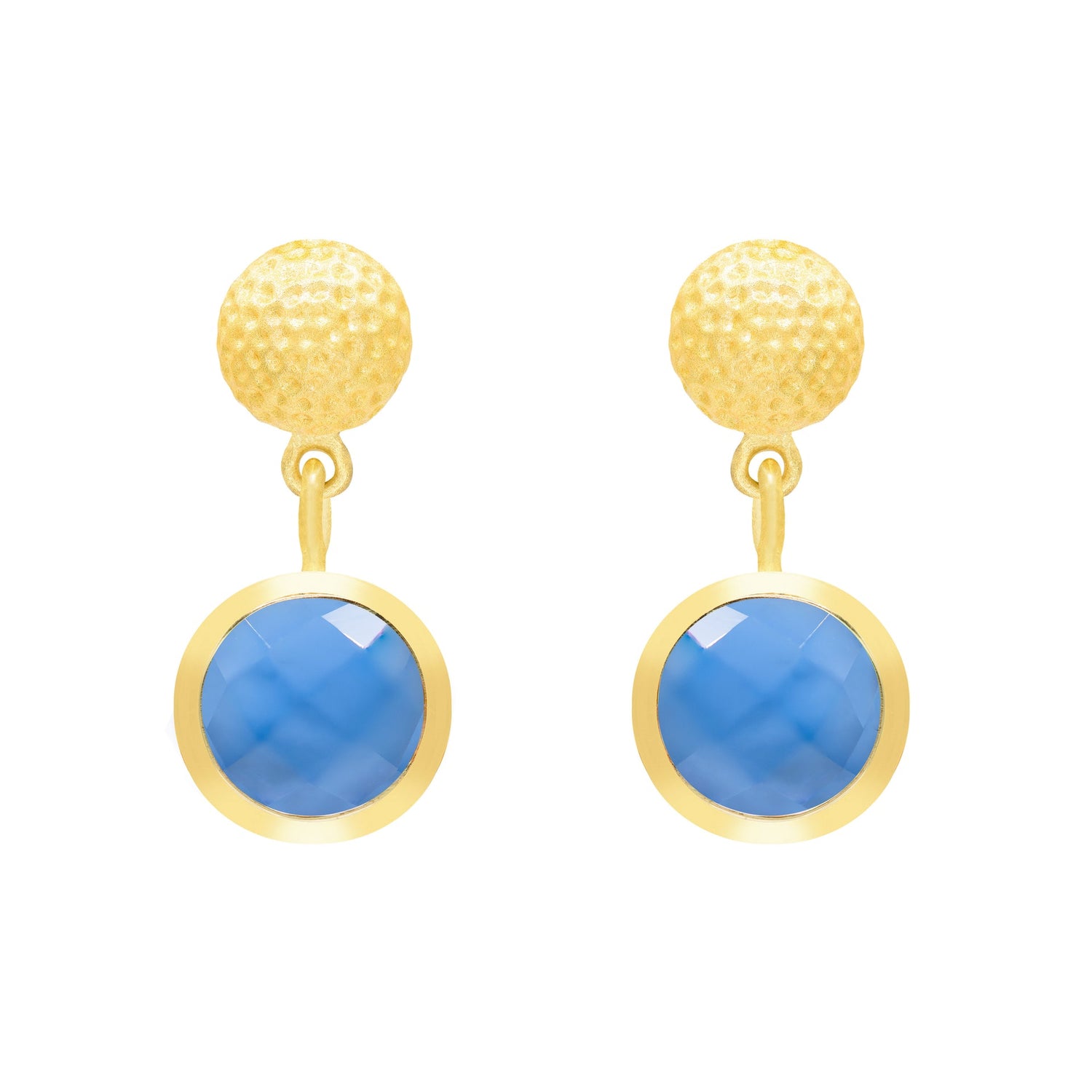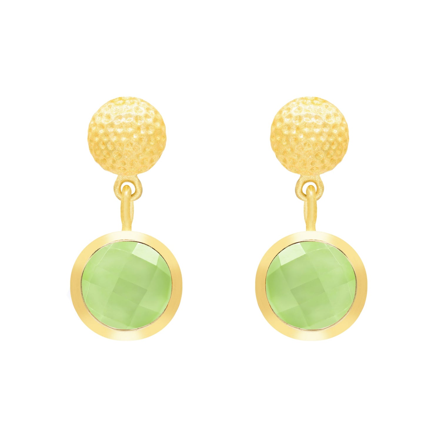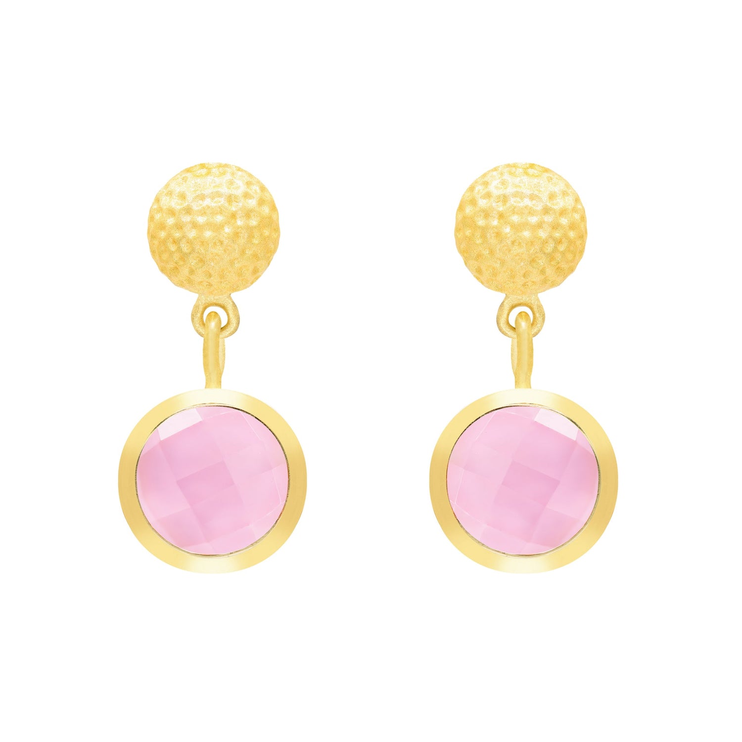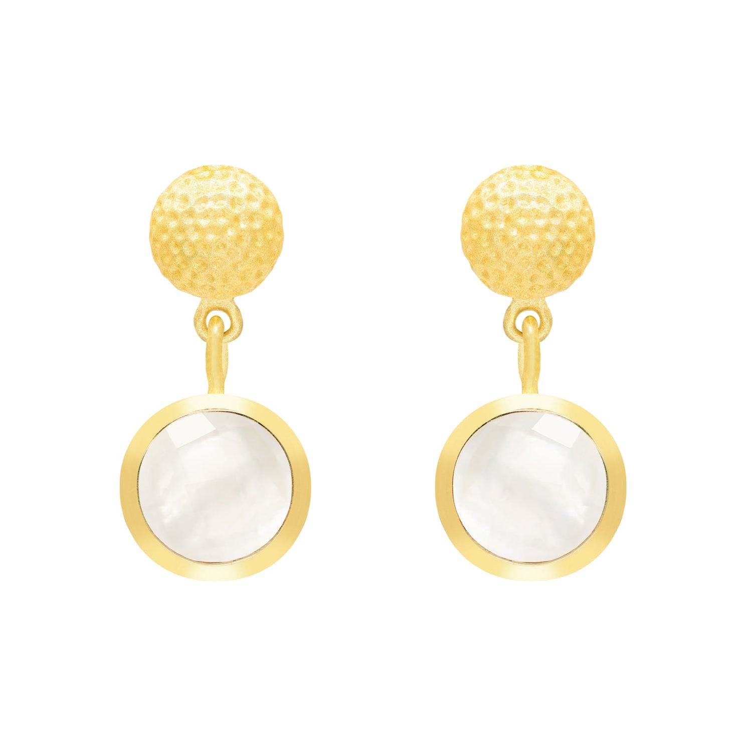 18k gold plated earrings with a textured dome stud and double-sided stone sphere attached Measures 1.25" long