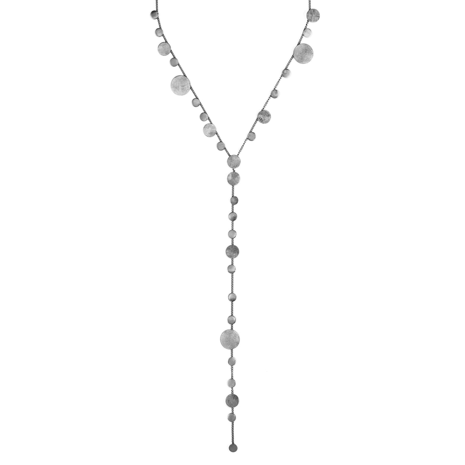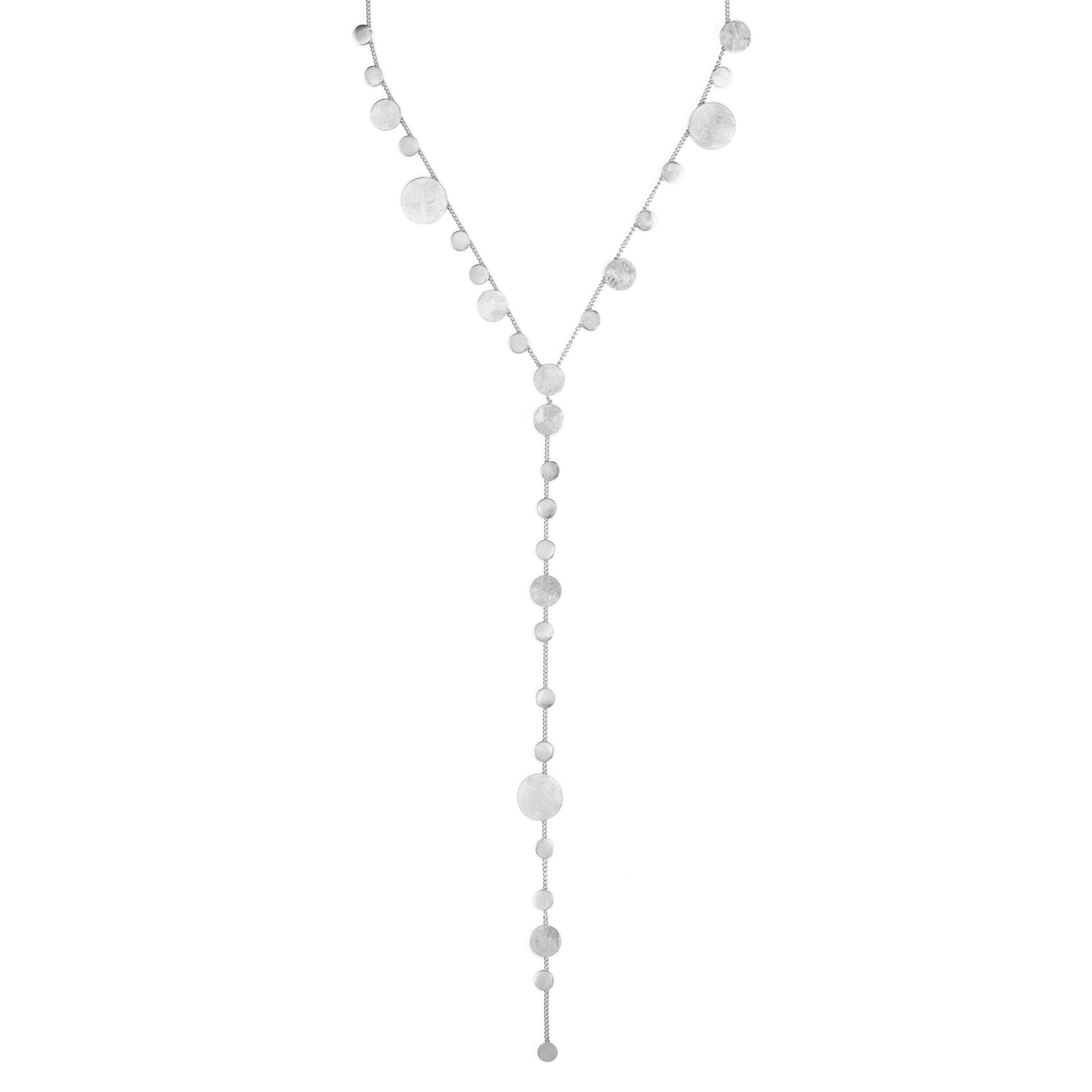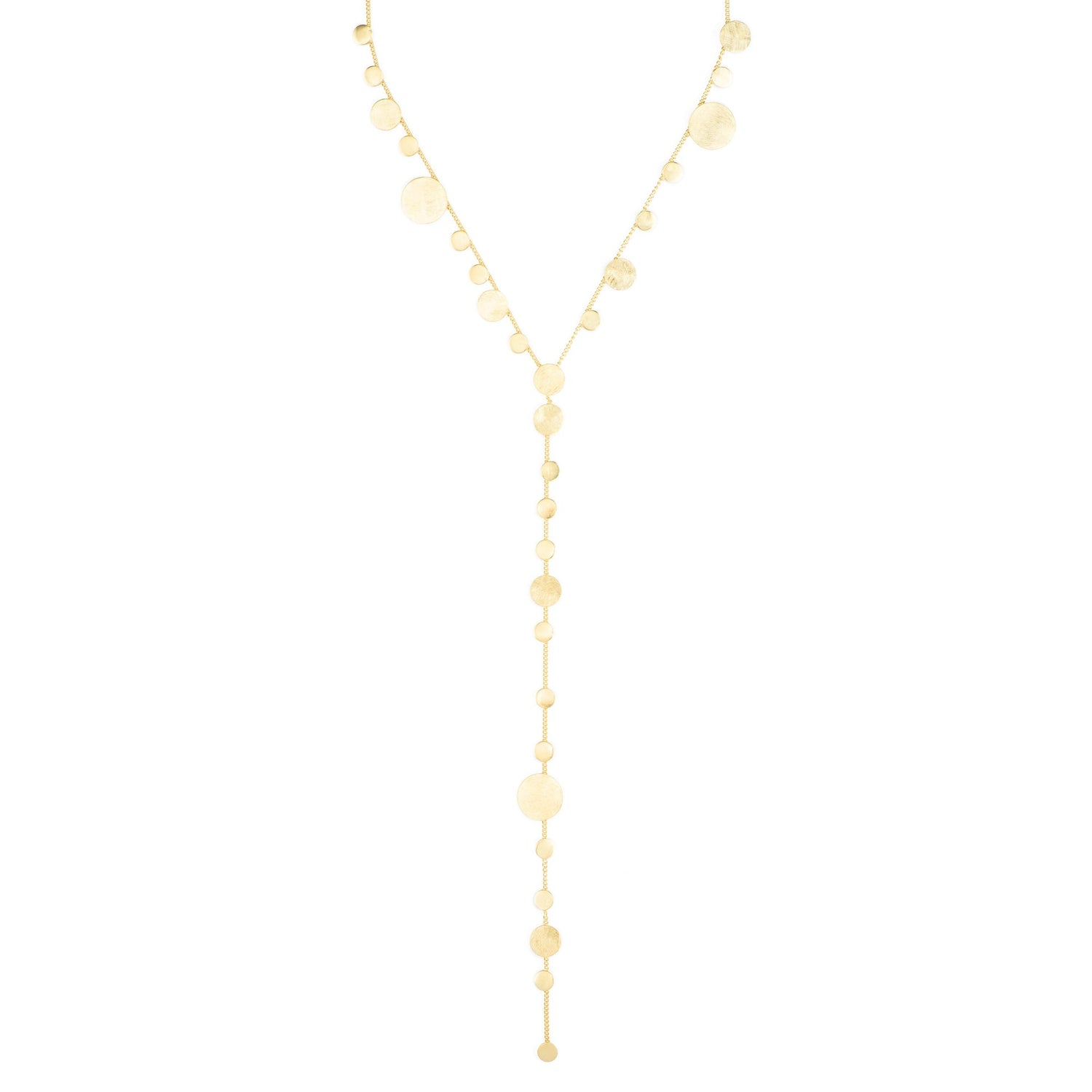 -18k gold or rhodium plated y necklace with gold dots along the chain