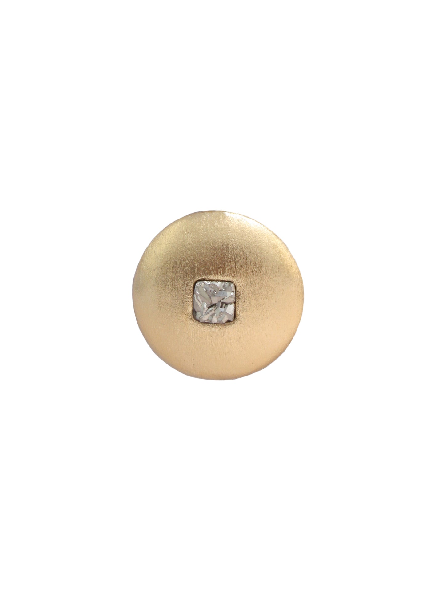 18k gold plated round signet ring with a square titanium druzy set into the center. This ring has a brushed matt look and a thin band.