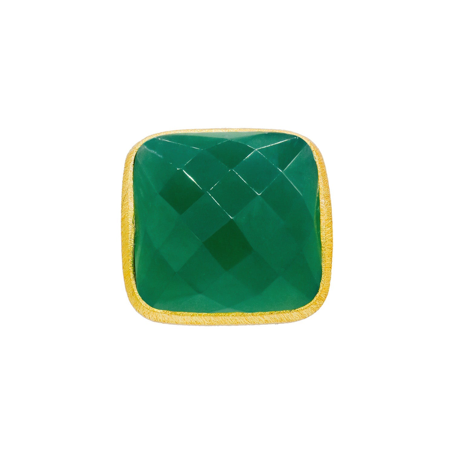 This 18k gold plated square ring features a charming stone and measures 1" wide, making a bold yet stylish statement. Handmade in Brazil, it combines artisanal craftsmanship with a modern design, ensuring each piece is unique. The square shape and gold plating offer a sophisticated touch, while the cute stone adds a subtle pop of elegance.