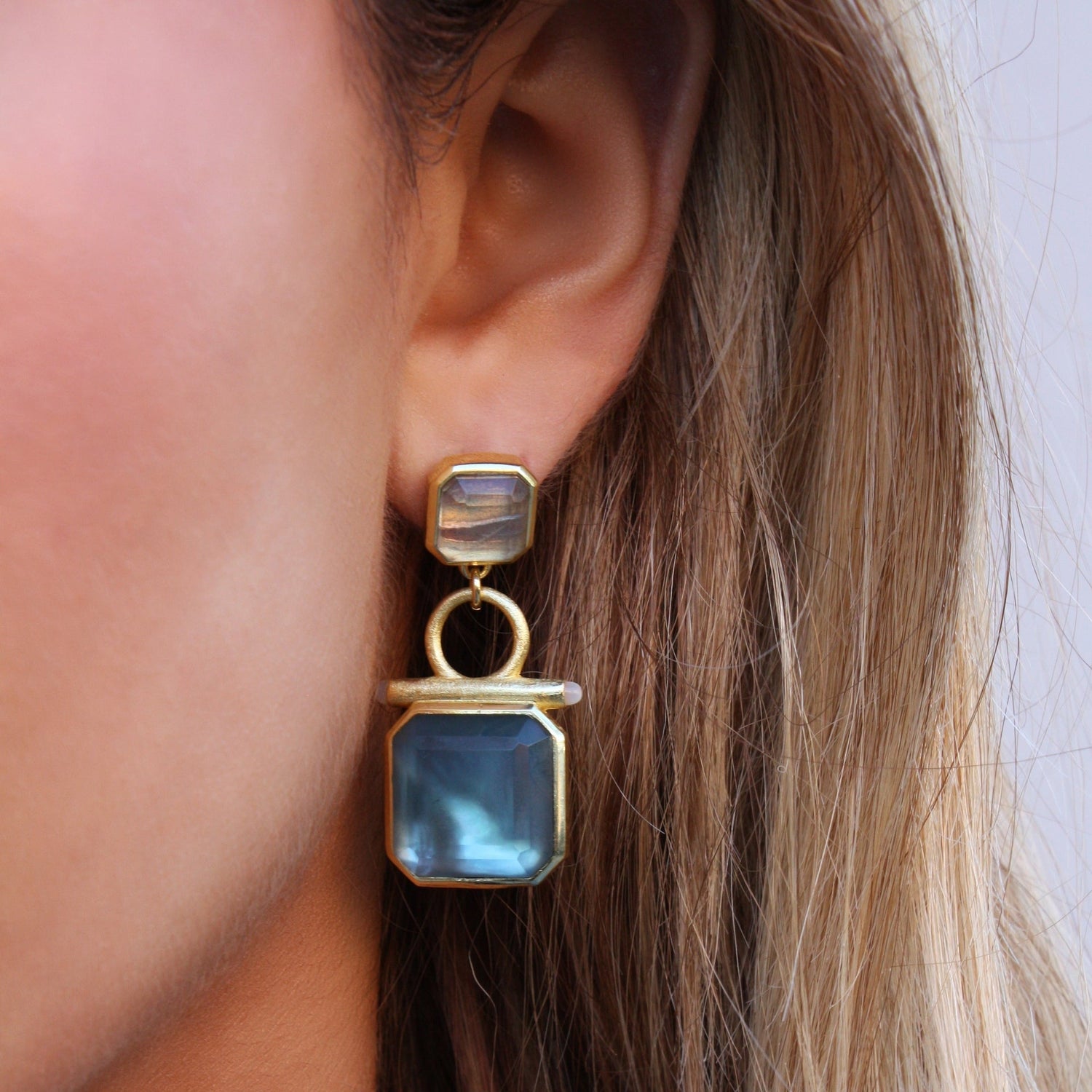18k Gold Plated Stone Drop Earrings