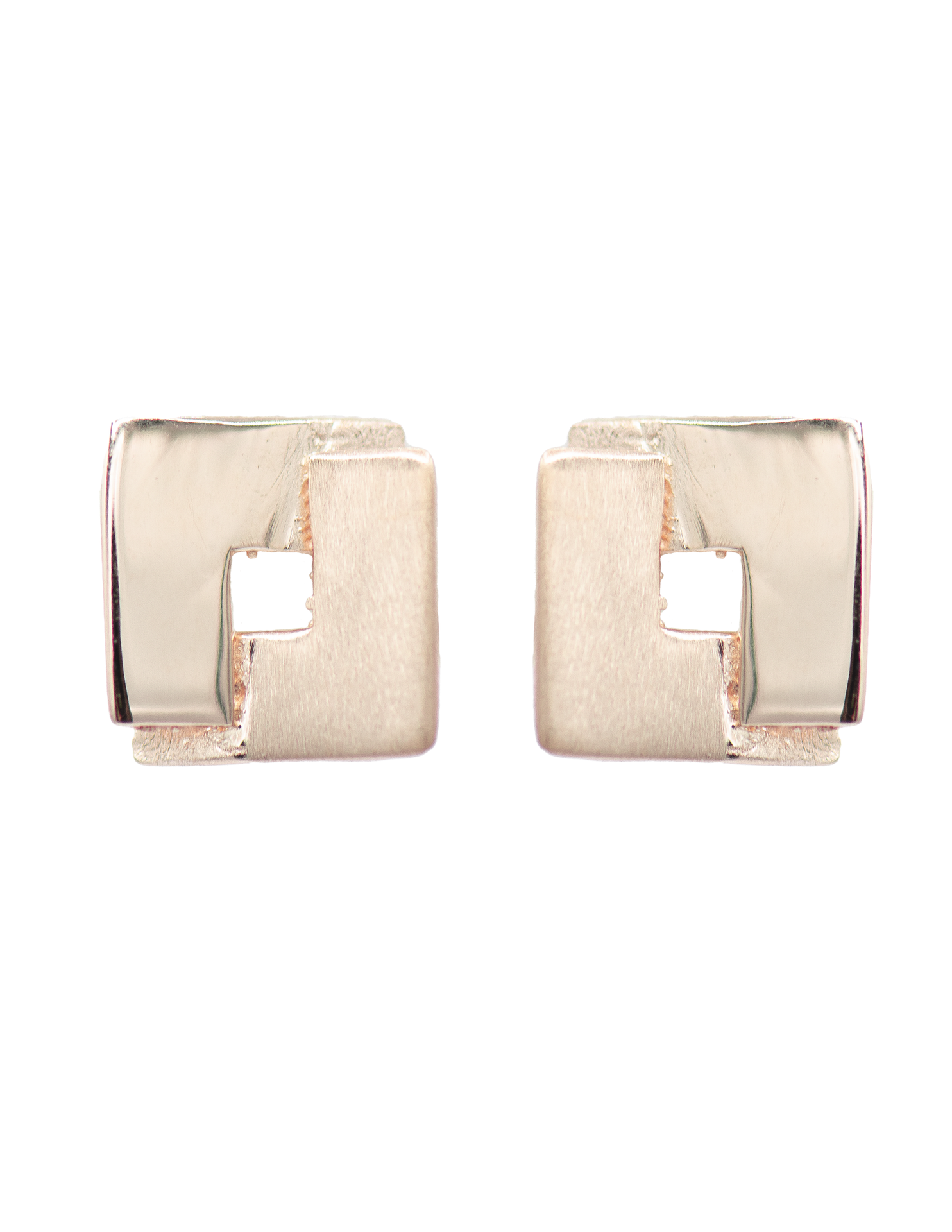 -18k rose gold plated square studs with one side shiny and one side brushed. Handmade in Brazil and measuring 1/2".