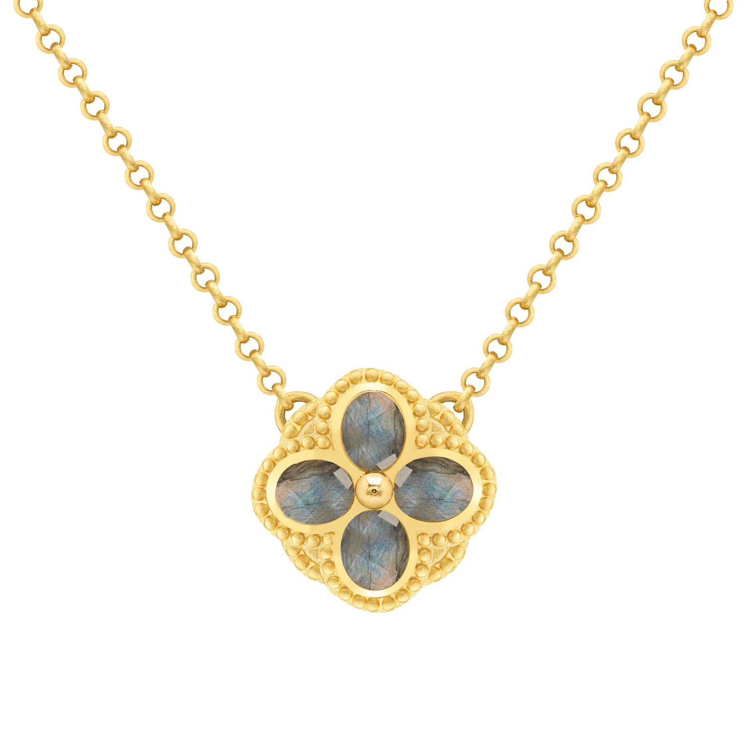 18k gold plated necklace with a flower pendant attached. Chain measures 18", pendant measures .5"